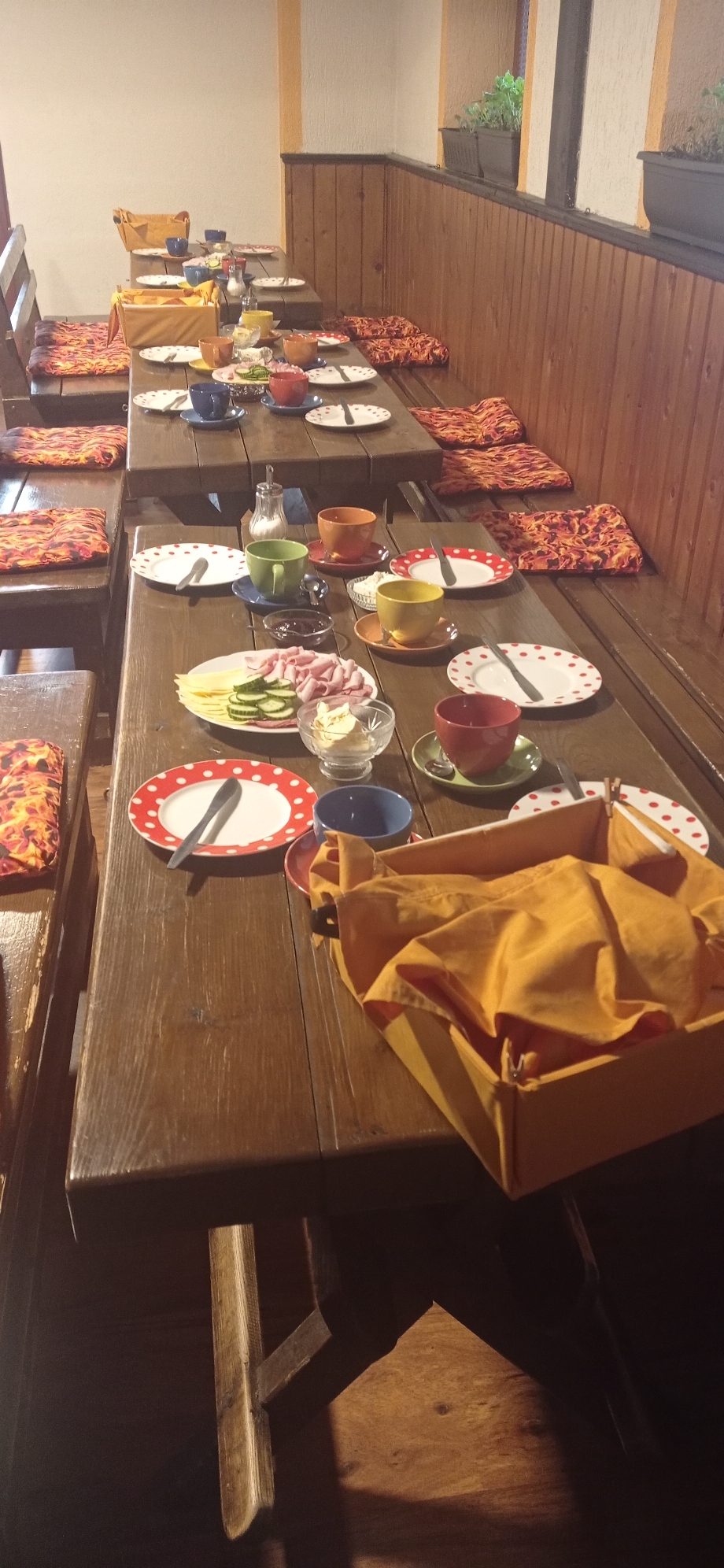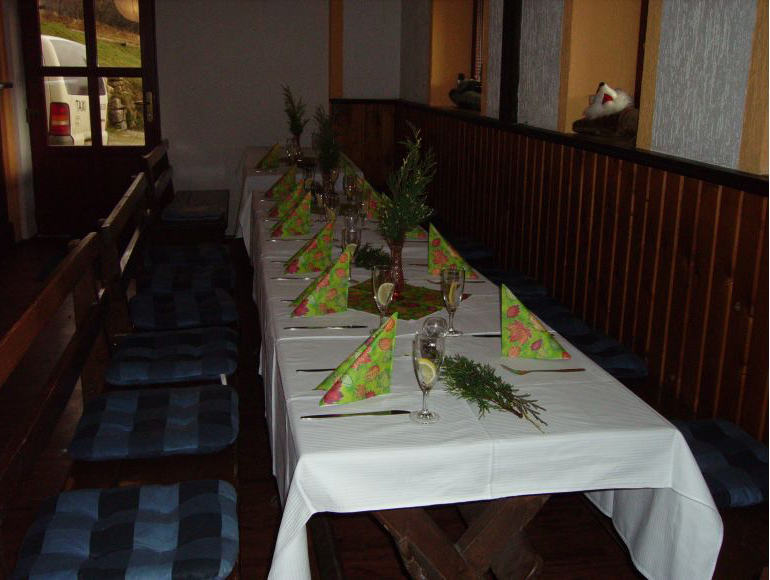 Hosté si mohou vybrat mezi polopenzí nebo vlastním vařením ve společné kuchyňce.